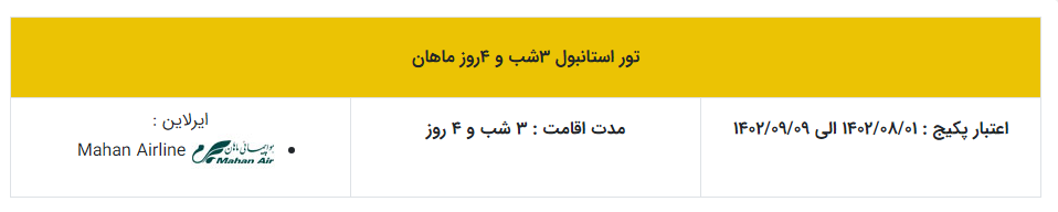 - نرخ پکیج با پایینترین کلاس پروازی محاسبه شده است.